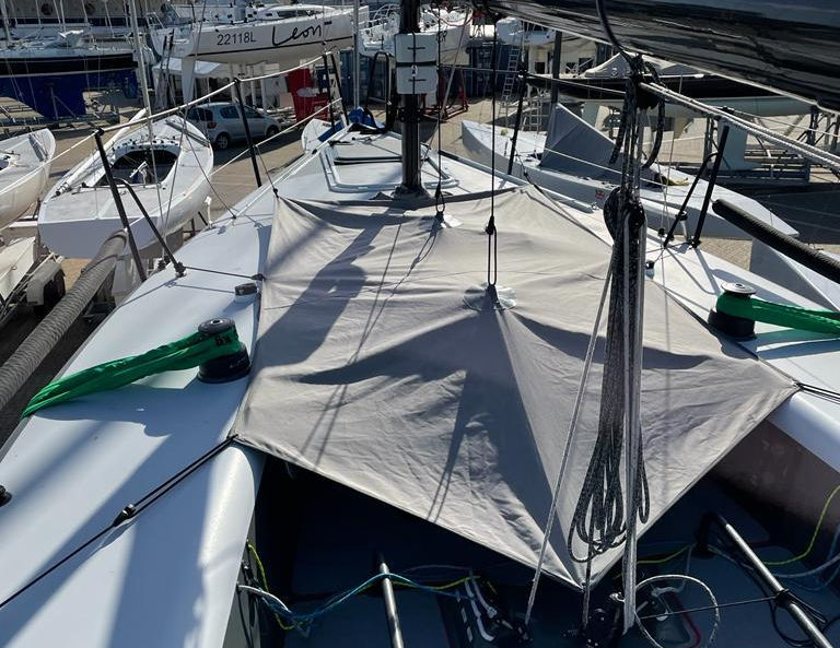Gweilo races with a full suit of North Sails 3Di Raw that has been optimised for racing under IRC in the Solent. The boat is dry sailed and lives on her own custom trailer with storage boxes that will be sold with the boat.