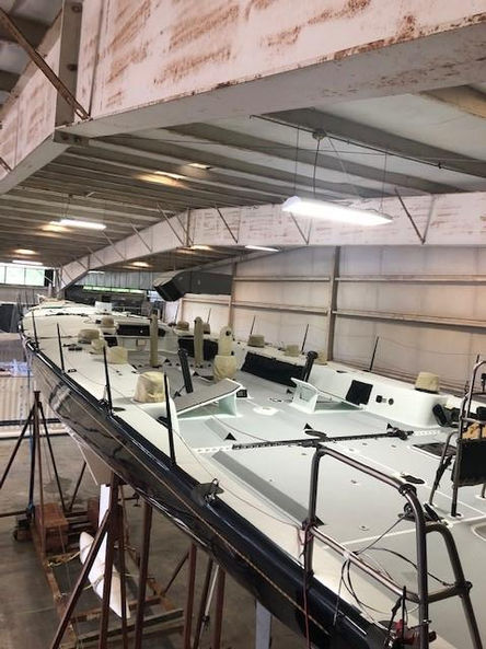 Intuition is offered with a large North Sails inventory, new composite standing rigging, full safety gear and a race/workshop container.